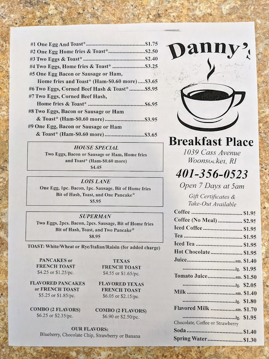Welcome to Danny's Breakfast Place, a beloved local gem tucked away at 1039 Cass Ave in Woonsocket, RI. For over 20 years, regulars have praised its exceptional breakfast offerings, particularly the legendary home fries that keep customers coming back for more.